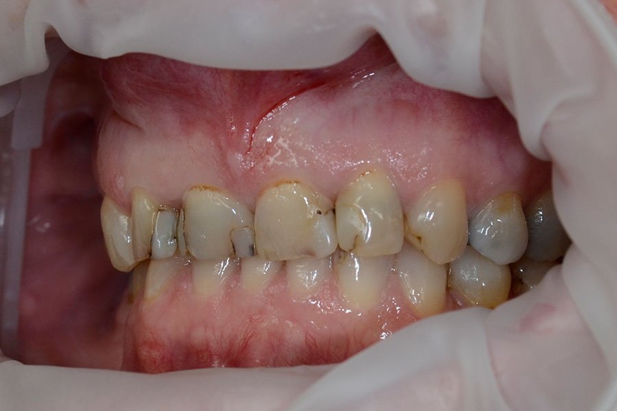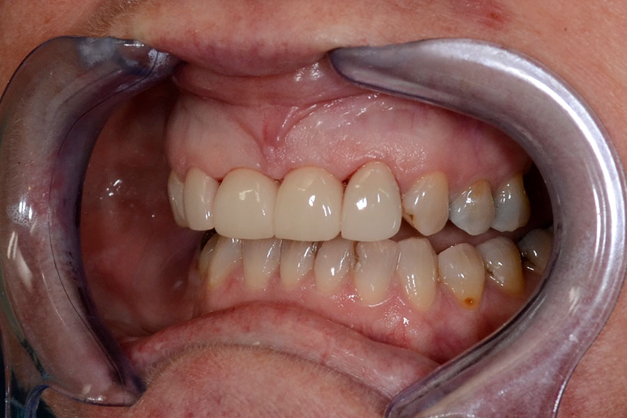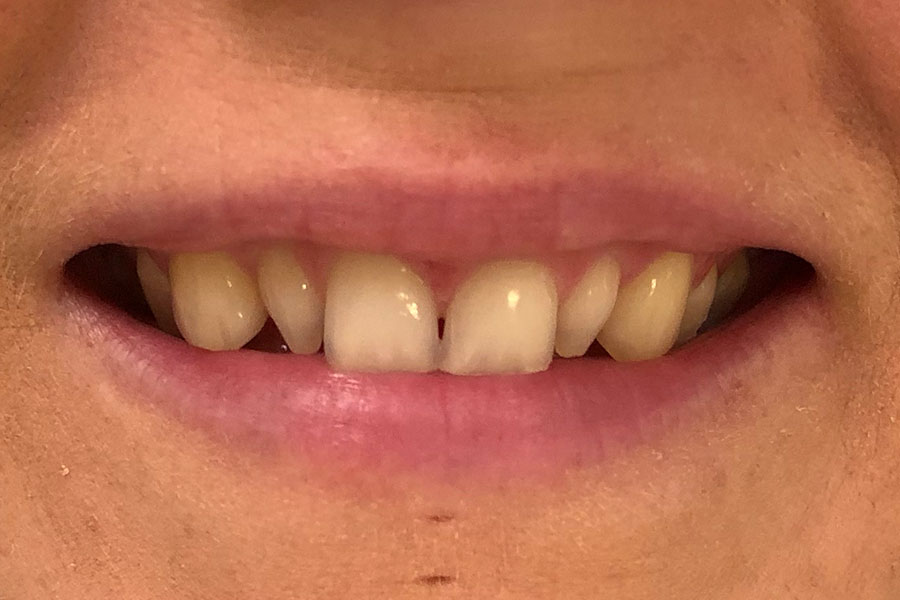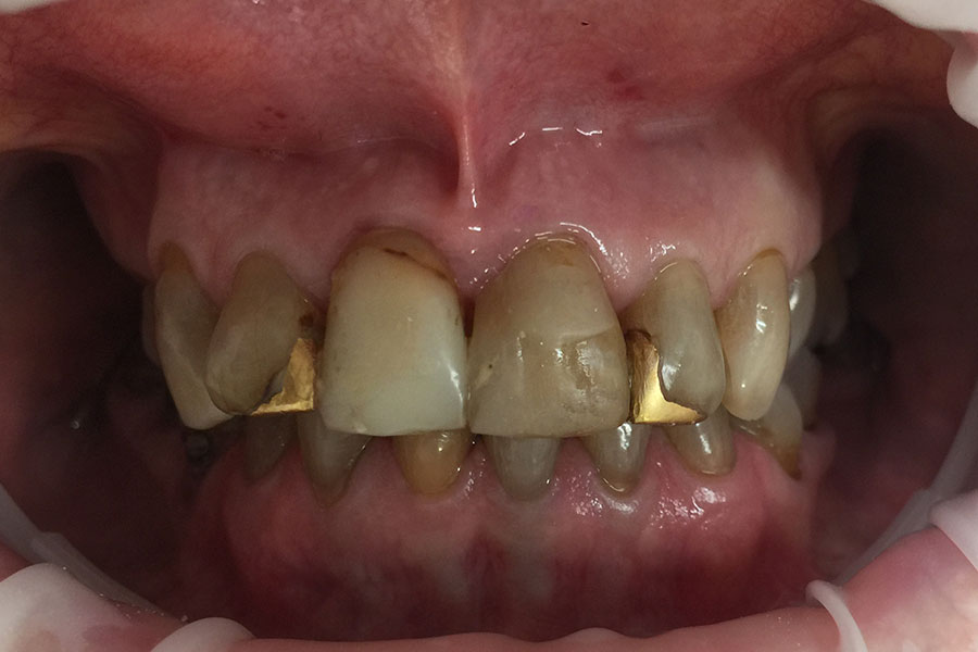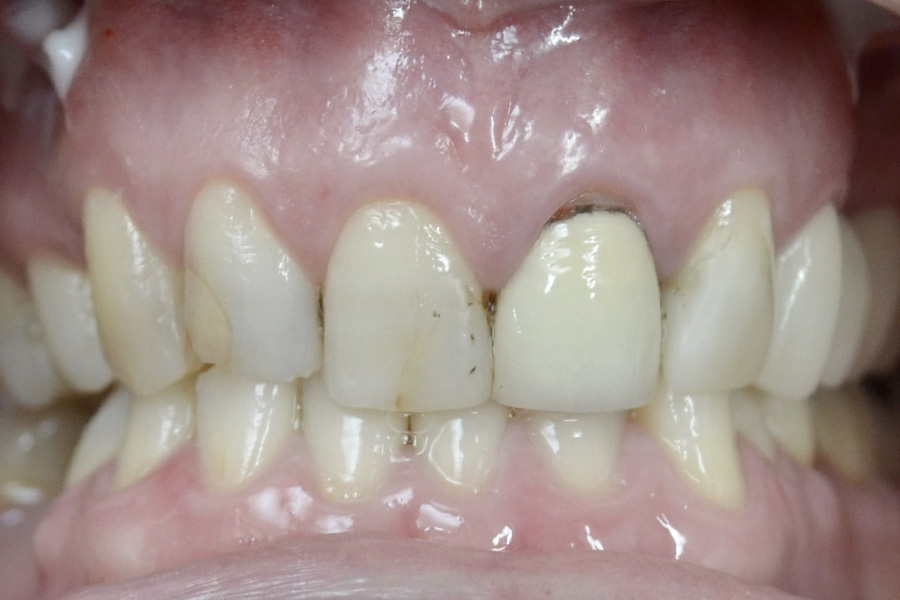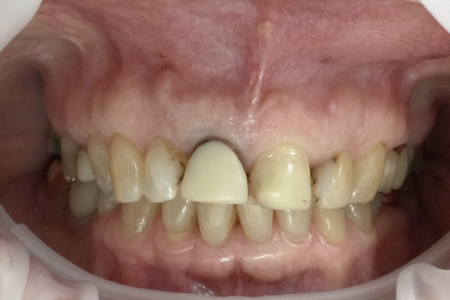Brooke had a single crown on the upper left central incisor that had a receding gum line.